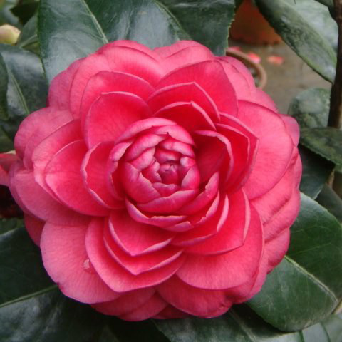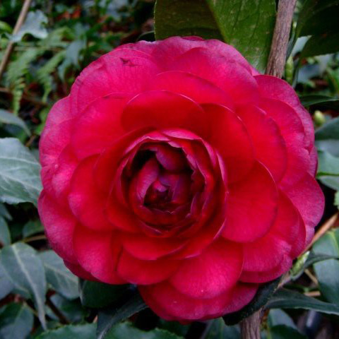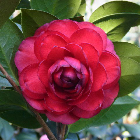 黑红色,完全重瓣,中到大型花, 花期1月