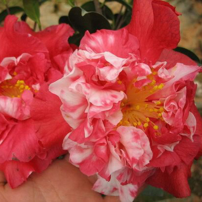 索马里兹女士(Lady de Saumarez)品种突变种,比利时桑德苗圃(Sander Ltd Nursery)分离,1913年公布。深红或紫红色,有时具白斑,花瓣腊质,呈现螺旋状卷曲,花瓣边缘有规则锯齿,半重瓣,大到巨型花,花 径12-14cm;叶椭圆形,9x4.5cm,绿色,扭曲,边缘具细锯齿,锐尖;株形紧凑,立性,长势慢。花期1月至2月。本种易退化