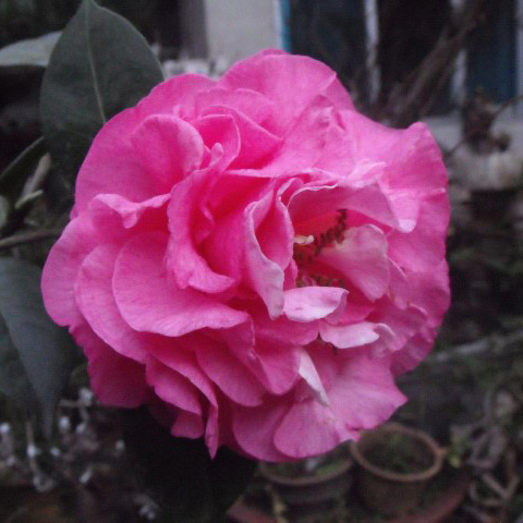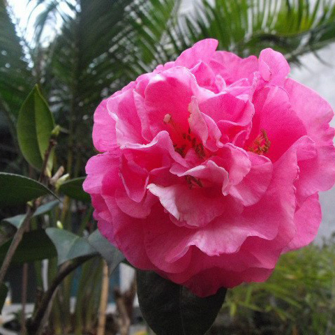 美国加州霍顿霍尔(Houghton S. Hall)从云南茶花品种大银红(Dayinhong)实生苗中选育的机会苗。淡玫瑰粉色,花瓣上起白色泡泡,似绉绢,极为特殊,花瓣直立,大花瓣13枚,雄蕊瓣12枚,半重瓣,巨型花,花径15cm,厚6cm;叶暗绿色,11x5cm;株形开张,长势快;花期1-2月
