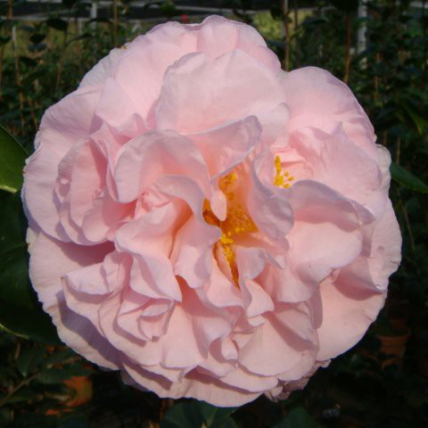美国费罗柴可夫斯基先生培育;1987年公布;白色泛羞粉红,偶见少量粉红色条纹,大花瓣,雄蕊瓣较多,大到巨型花,半重瓣到牡丹型;叶浓绿;长势中;开张;花期中