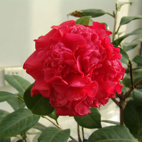 鲜艳夺目的血红色,使人颇具灼热感,每个花瓣直立弯曲不重叠,形成丰满的半球状,大型花,花径10-l3cm;叶深绿色,10x7cm,幼茎叶红色;株形大,开张,立性,长势中等;花期1-4月。病毒感染后花瓣出现白斑,称为复色火瀑布