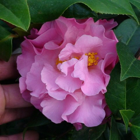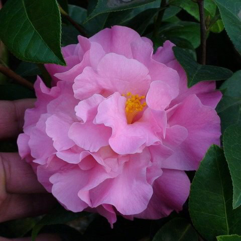 此品种由新西兰海顿先生培育,是“匹它山茶”的一个实生苗育成的,粉红色花,牡丹型,花径12厘米左右,花厚6厘米,21--26个花瓣,花量极多,花色鲜艳粉嫩,叶片近椭圆形,叶面略粗糙,盛花2月份