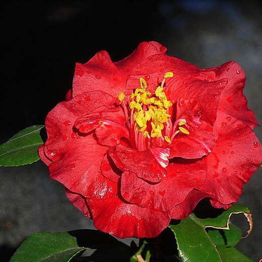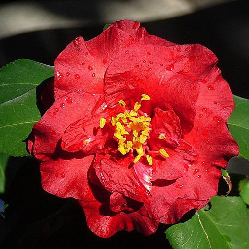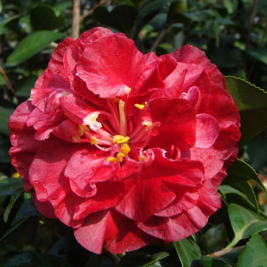 红山茶,1982美国佛罗里达州Paul Gilley培育选出 ,中轮(8-10*3-5cm),花瓣约18-20枚,淡红色花丝,树性横张,浓密,长势慢