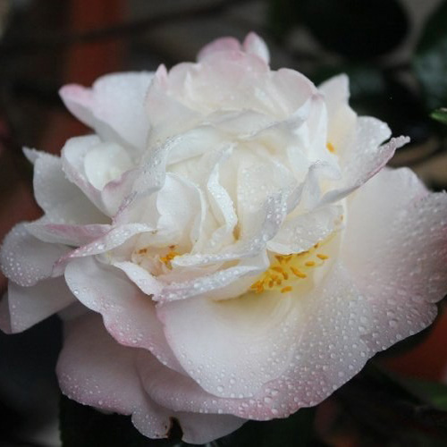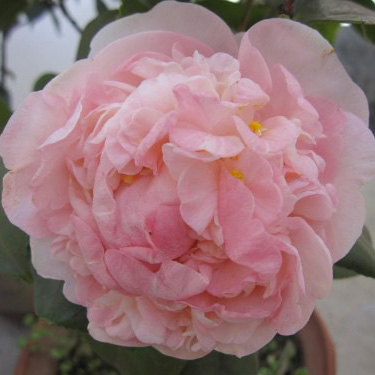 红山茶种内品种伊丽莎白·博德曼(Elizabeth Boardman)和东迈克(Don Mac)杂交种,美国人培育,1979年公布,羞粉红色,随着花开时间而逐渐加深,花瓣质地厚实,半重瓣到牡丹型,巨型花,花径14cm以上;叶深绿色,8.5x5.5cm,有光泽;株形开张,立性,枝叶密,长势中等;花期1-2月