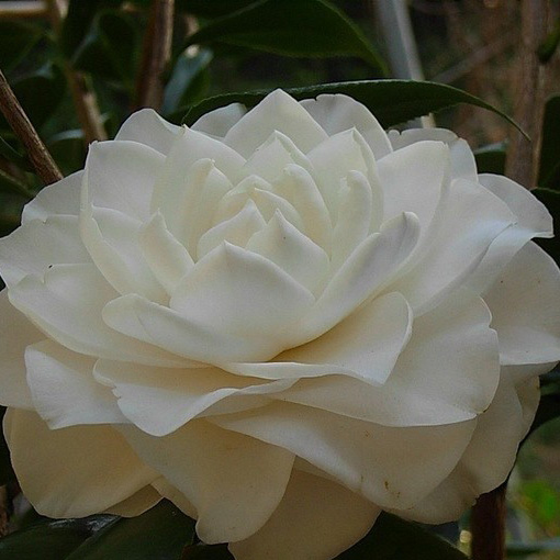 美国培育,1962年公布。白色,洁白的花瓣排列似一件海泡石工艺品,花瓣边缘内卷,完全重瓣,大型花,花径11-l3cm;植株立性,长势中等;花期2-3月