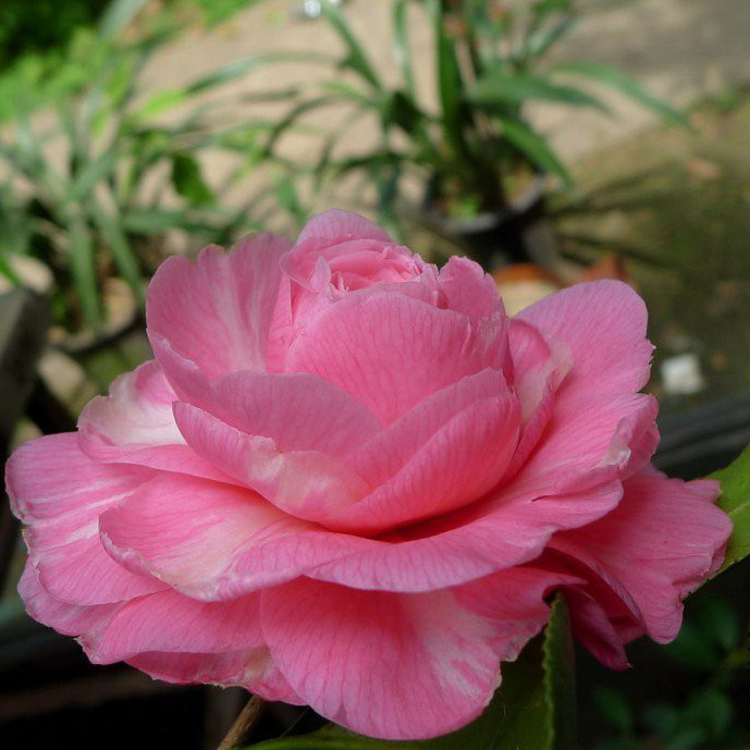 红山茶,1962.澳大利亚.'Madame de Cannart d' Hamale'培育,深粉到粉红色,枝変种,完全形,花瓣偶入白筋或瓣缘内卷.中轮(9公分).