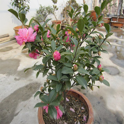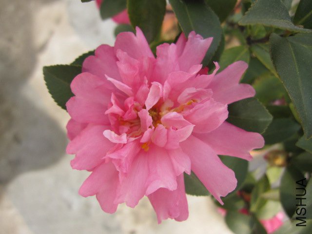 美国路易斯安那州麦克奈特(Mrs T.K. McKnight)夫人选育的茶梅机会苗,1954年初花,1958年公布。粉红色到深粉色,泛紫红色调,花瓣30-36枚,呈波浪状,具凹槽,雄蕊瓣6-10枚,玫瑰重瓣型,小到微型花,花径5-7cm;厚2.5cm;花期早