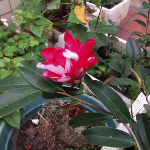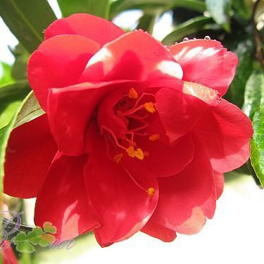 日本的一个观叶性茶花品种,原产日本爱知县,1956年公布。花为红色,具白色斑块,花瓣窄长,12~22枚,花朵下垂似吊钟,小型花,直径7厘米左右,单瓣型,叶浓绿,窄披针形,厚质,长势中等,枝条柔软下垂,花期2~4月份