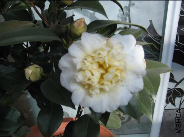此品种极易与黄绣球(Brush F-ield’s Yellow)品种相混淆,外轮花瓣白色,内轮中的瓣化假花瓣深奶黄 色,花径中等,托桂型,生长中等,立性,花期中到晚,而黄绣球外轮花瓣为古色古香的白色,内部花瓣起皱,仔细辨别是容易的,两个品种均在澳大利亚育成