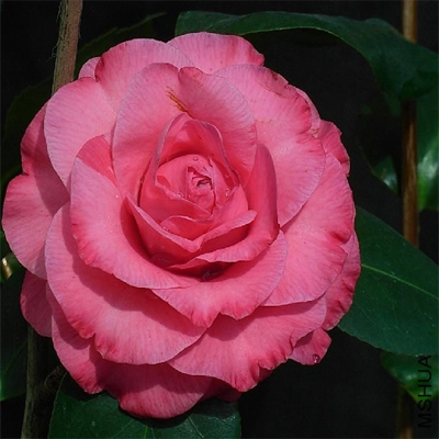 美国南卡罗来纳州玛丽爱丽丝和尼尔考克斯(Mary Alice and Neal Cox)选育的红山茶机会苗,1972年公布。深粉红色,75-80%为白色斑块,完全重瓣,大到巨型花,花径12.5-15.5cm,厚5cm;叶深绿色,8x3.8cm;株形紧凑,立性, 势中等;花期中。本种花朵质地好,花开持久