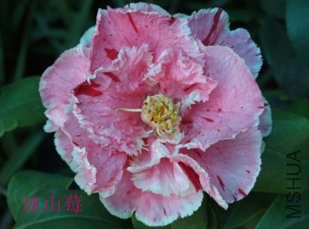 它是由日本的"三色"品种1832年传入德国,1913年在比利时发生突变,产生了一个花瓣带有明显锯齿的品种"佛蕾德"。1955年在美国"佛蕾德"品种又突变产生了一个带裂口状锯齿的"灰姑娘"品种,1987年在美国"灰姑娘"品种又突变产生了"冰山莓"茶花品种