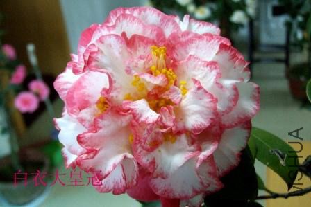 花半重瓣至牡丹型,花型大,白色花瓣带玫瑰红边,花期中。它是由"贝蒂赛菲尔德(Beecy.Sheffield)与基伯深女士(Mrs F.L.Gjbsbn)杂交获得的一个新品种,以后又产生了许多变异品种,美国统称贝蒂家族(Bettys)