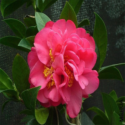 花.粉红~橙红色.鬆牡丹~全牡丹.大轮(12公分);树性直立.长势中等.
