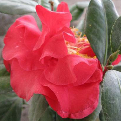 云南茶花杂交种,其杂交组合是云南茶花大玛瑙(Cornelian)品种与红山茶戴维斯夫人(Mrs. D.W. Davis)品种,由美国加州Frank Pursel先生培育。玫瑰红色,半重瓣型到松散的牡丹型,巨型花,平均花径14.5厘米,花朵厚度5.5厘米,外轮大花瓣14-18枚,花药和花丝黄 色;植株直立,开张,长势旺盛;叶片浓绿,厚实,13.5-15厘米长,8.5厘米宽;花期10月至次年3月盛开。在美国育成