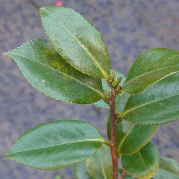 美国佛罗里达州保罗吉雷(Paul Gilley)先生选育的红山茶机会苗,1980年公布。玫瑰粉色具白色、红色条纹、斑块,花瓣内勾,75枚,能开出六角状、螺旋状花,完全重瓣,小型花,花径6-7cm;叶深绿色,7.5x3.8cm;植株立性,长势中等