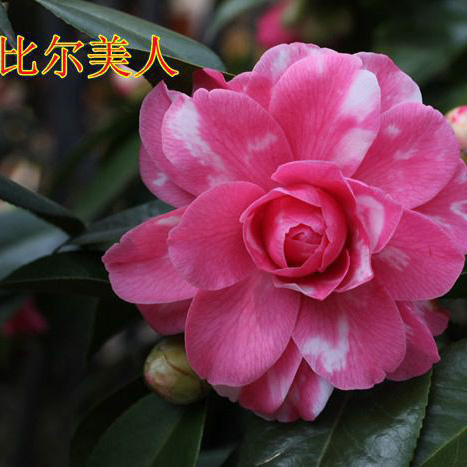 红山茶,玫瑰淡粉色,花心有白斑,大型花,玫瑰型到全文瓣
