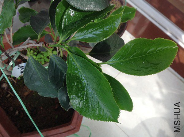 赛牡丹(Elegans Splendor)品种突变种,美国加州牛西奥苗圃于1970年分离,1977年公布。纯白色,外轮花瓣宽大,略扭曲,花瓣边缘有不规则深齿,有时出现淡粉红色,中心的小花瓣和雄蕊明显带黄 色,非常典雅丰满的武瓣,大到巨型花,花径12-15cm;叶较大,11.5x5cm,绿色,有光泽,叶芽白色;株形开张,灌木状,茂密,长势较旺。花期1-2月